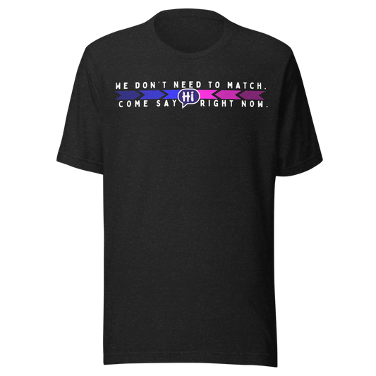 We Don’t Need to Match. Come Say Hi Right Now. T-shirt