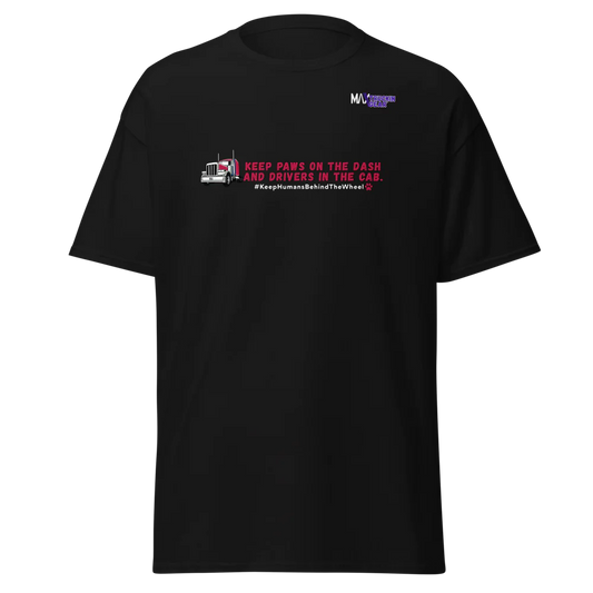 Save The Truckers T-shirt: Keep Paws on the Dash and Drivers in the Cab. Red Truck Edition