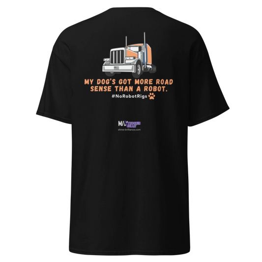Save The Truckers T-shirt: My Dog’s Got More Road Sense Than a Robot. - Orange Truck Edition